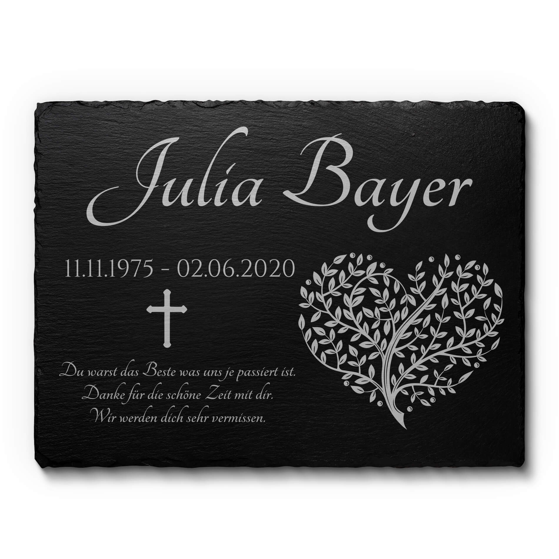 Grabtafel aus Naturschiefer mit Wunschtext und Motivauswahl in 40×30 cm