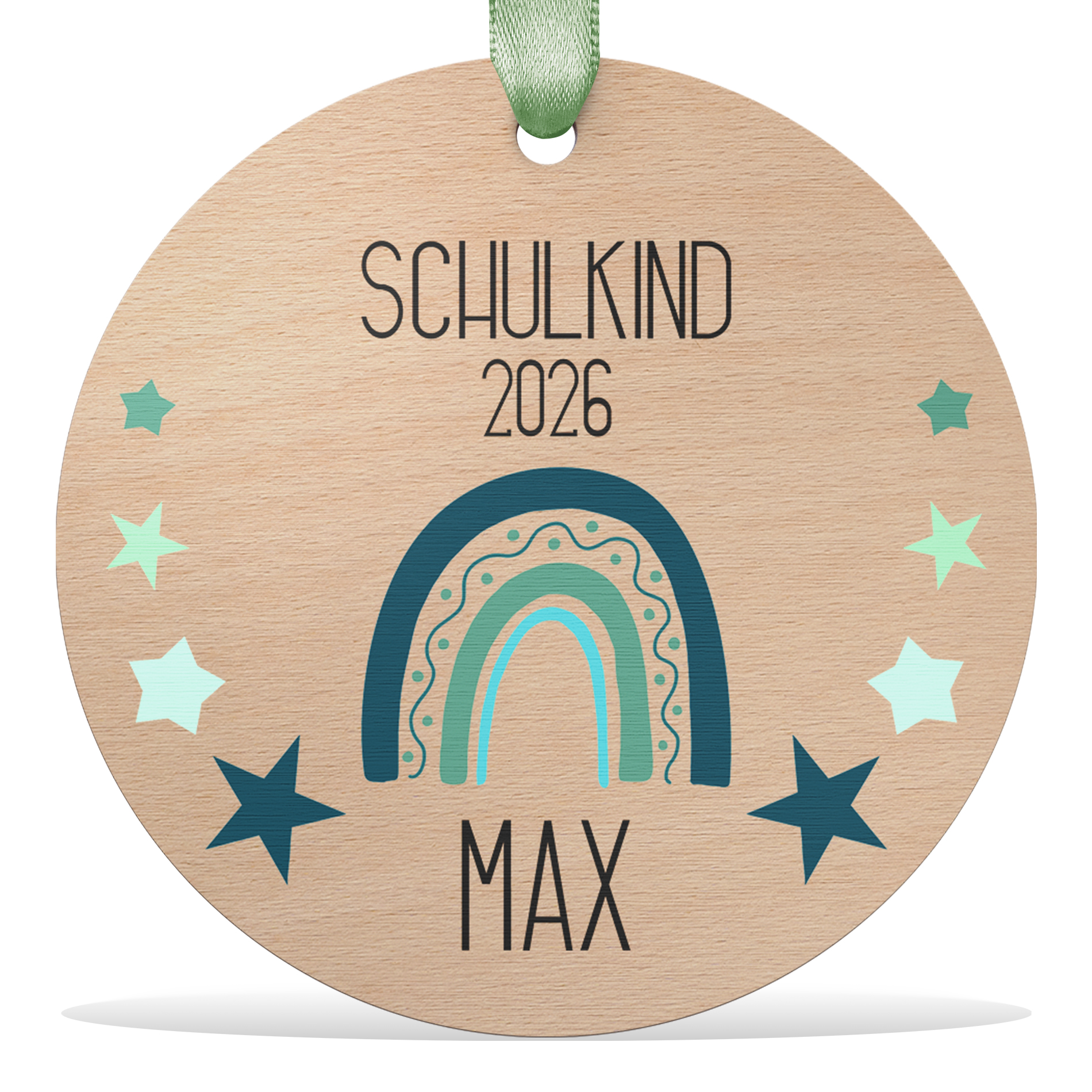 Schultüten Anhänger mit blauem Regenbogen Design aus Holz